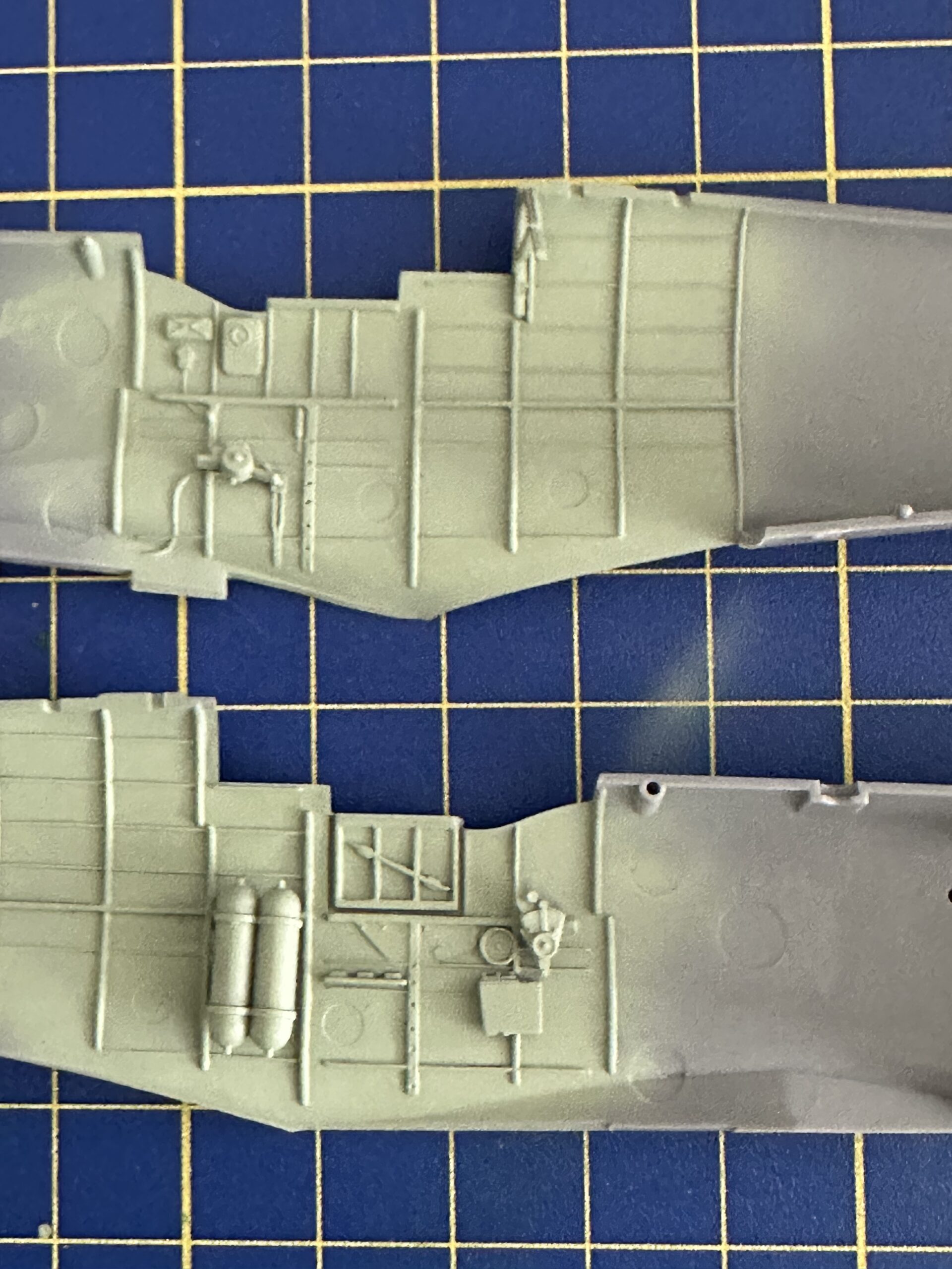 I didn’t have a masking kit for the canopy, so I ordered one, but I wanted to move on with my model and decided to mask off the cockpit with blue tack. This proved to be a bad idea, as the blue tack was difficult to remove after painting.
