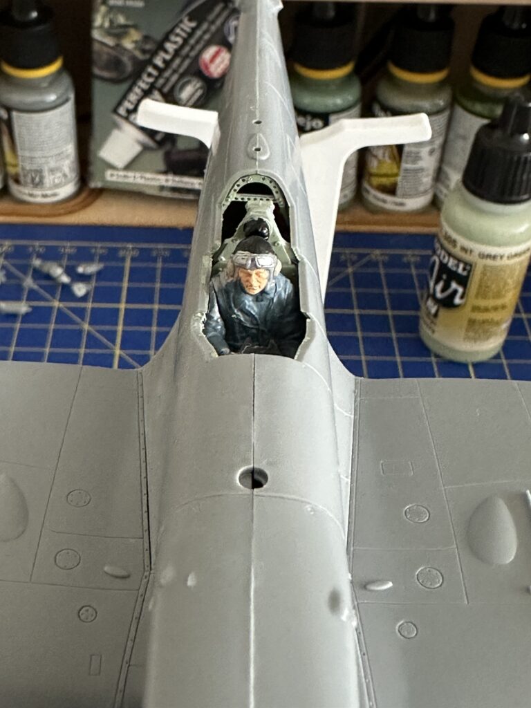 The cockpit was assembled with the pilot figure and wings added before painting.